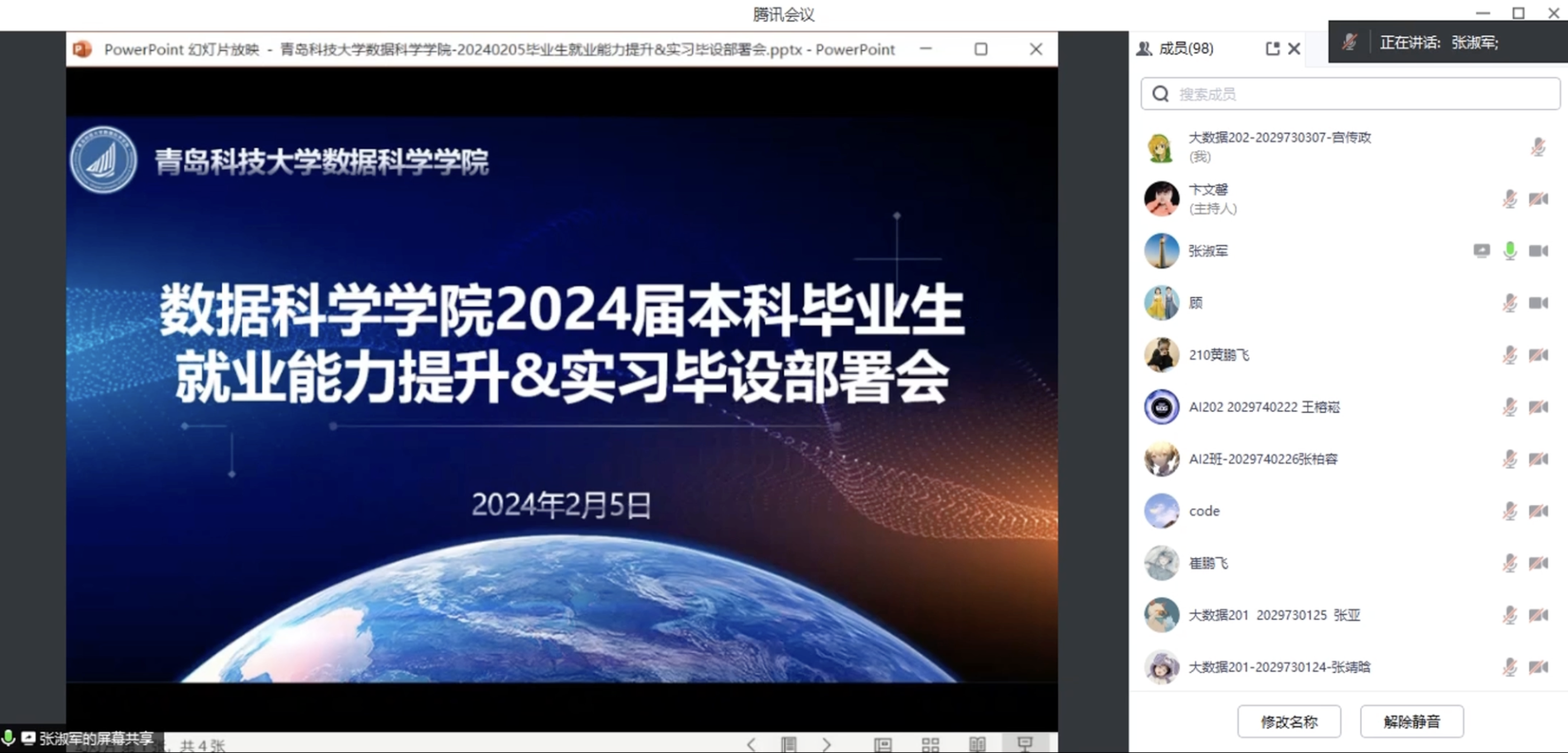 2月5日下午,bv伟德通过腾讯会议召开2024届本科毕业就业能力提升培训暨实习毕设部署会,公司专职组织员官杰、经理助理张淑军出席会议并部署相关工作,学工办主任兼团委书记顾姗姗主持会议。2024届全体本科毕业生参会。