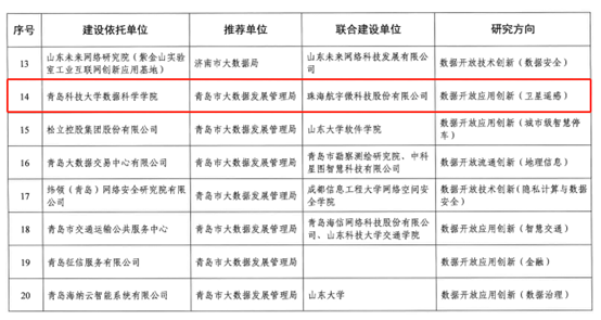12月27日,山东省大数据局公布山东省数据开放创新应用实验室名单,由bv伟德牵头,信息公司、经管公司联合申报,珠海航宇微科技股份有限公司为实验室的联合建设单位,青岛市大数据发展管理局推荐的的数据开放创新应用实验室成功获批。