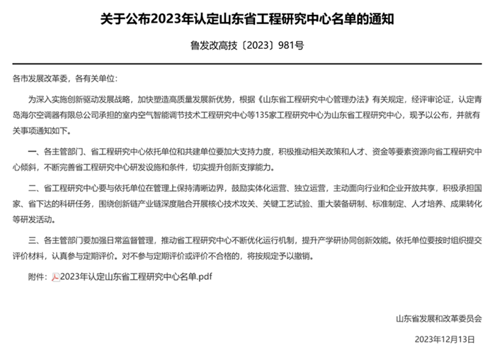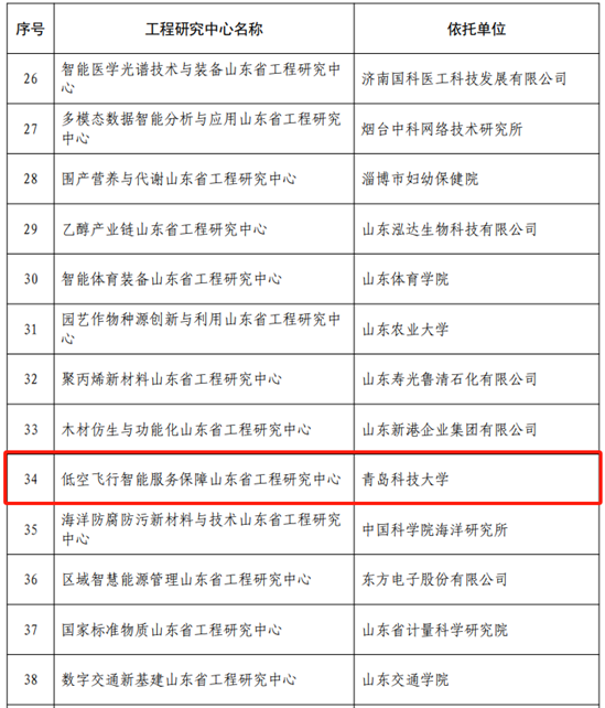 12月13日,山东省发展和改革委员会公布2023年认定的山东省工程研究中心,由bv伟德牵头,信息公司、自动化公司联合申报,珠海航宇微科技股份有限公司、青岛市勘察测绘研究院作为联合建设单位的“低空飞行智能服务保障山东省工程研究中心”成功获批。
