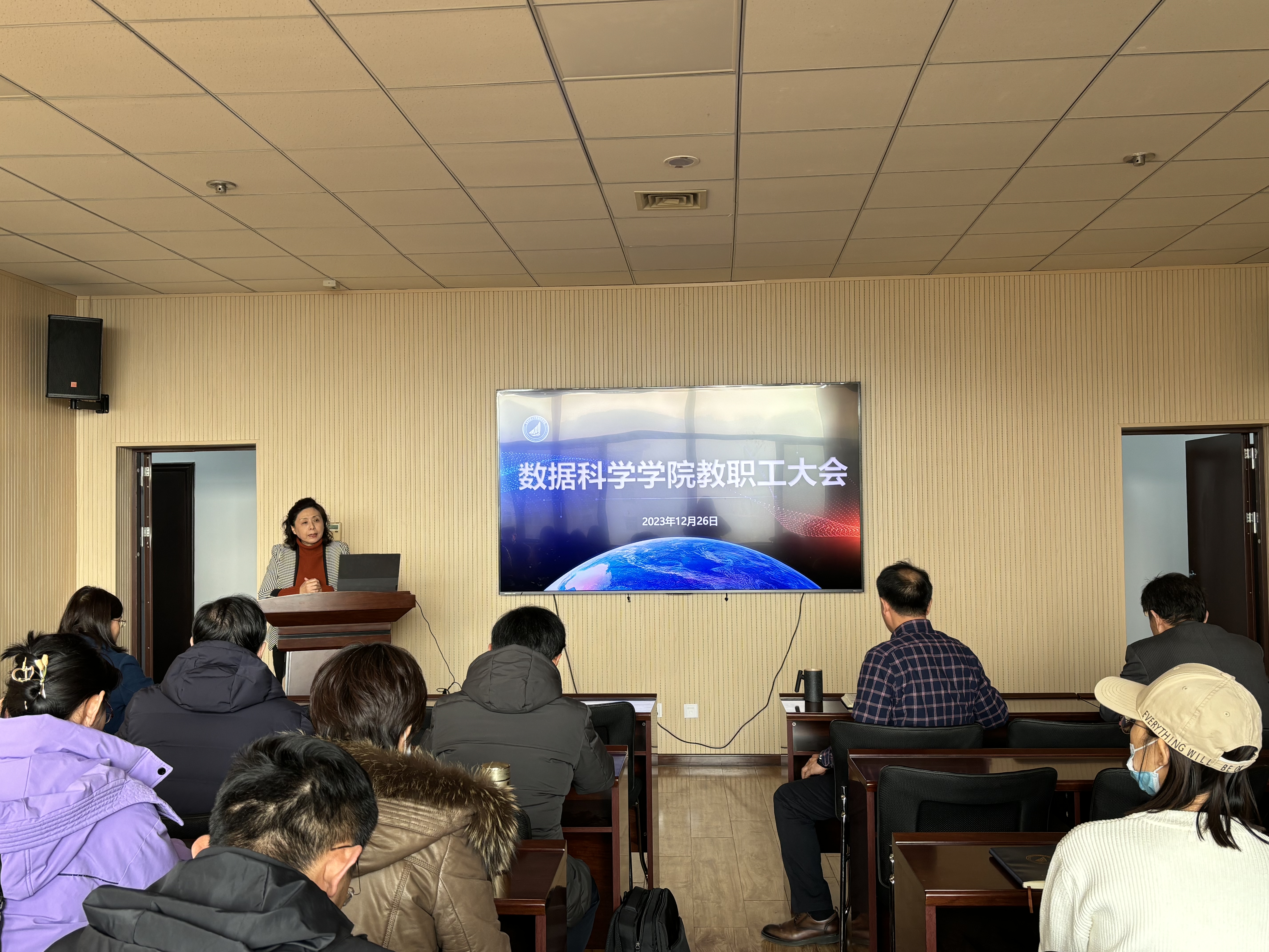 12月26日,bv伟德在图书馆A区4008召开全体教职工大会。党总支书记官杰主持会议。