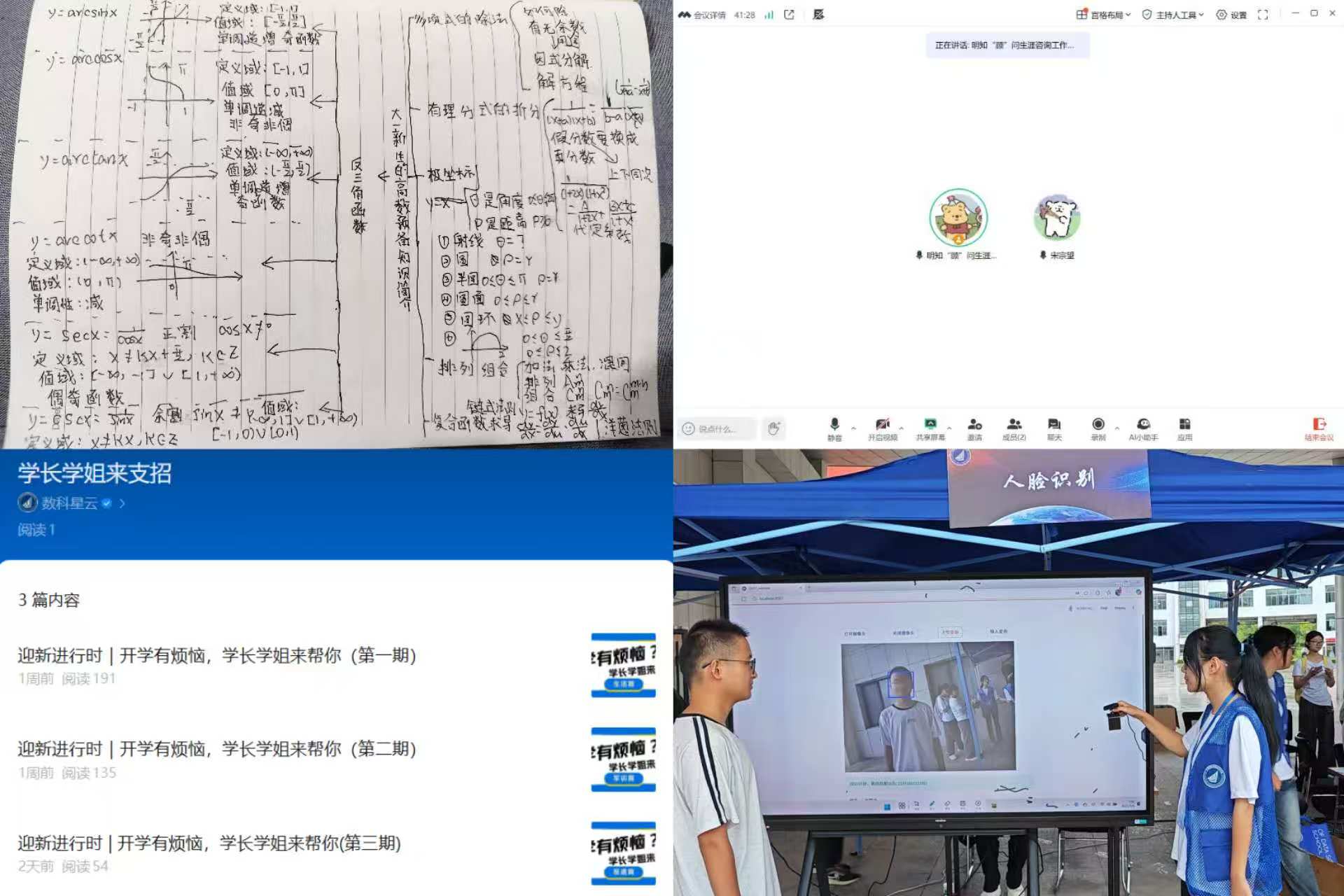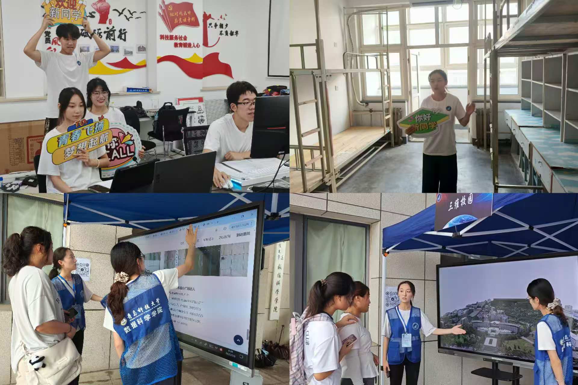 全周期场景覆盖,打造迎新服务“无缝链”。公司连续三年开展“未入校,先入学”活动,以 “时间轴” 为脉络,覆盖新生从假期到入校的全周期需求,实现“高大衔接”的平稳过渡。早在8月上旬,假期开展“学好一门课、读好一本书”假期衔接班,公司便启动“学术预热计划”,为新生精选《数据科学导论》《人工智能算法基础》等入门书籍,配套线上课程资源包,帮助新生提前克服 “专业畏难情绪”;针对部分新生“目标不清、方向不明”的问题,公司依托职业生涯规划揭榜挂帅项目,组织职业规划导师为50余名新生开展“1对1”线上咨询,帮助新生初步明确发展方向;开学前两周,领航学长学姐推出“开学有烦恼,学长学姐来支招”系列内容,通过“行李打包清单”图文、“宿舍生活小技巧”短视频、“选课避坑指南”直播等形式,覆盖新生高频疑问,不少新生留言“看完视频,开学焦虑少了一半;迎新当天设置全流程服务岗,融入数据科学学科特色的“人脸识别系统”快速核验新生身份,兼顾科技感与便捷性,提升报到效率。