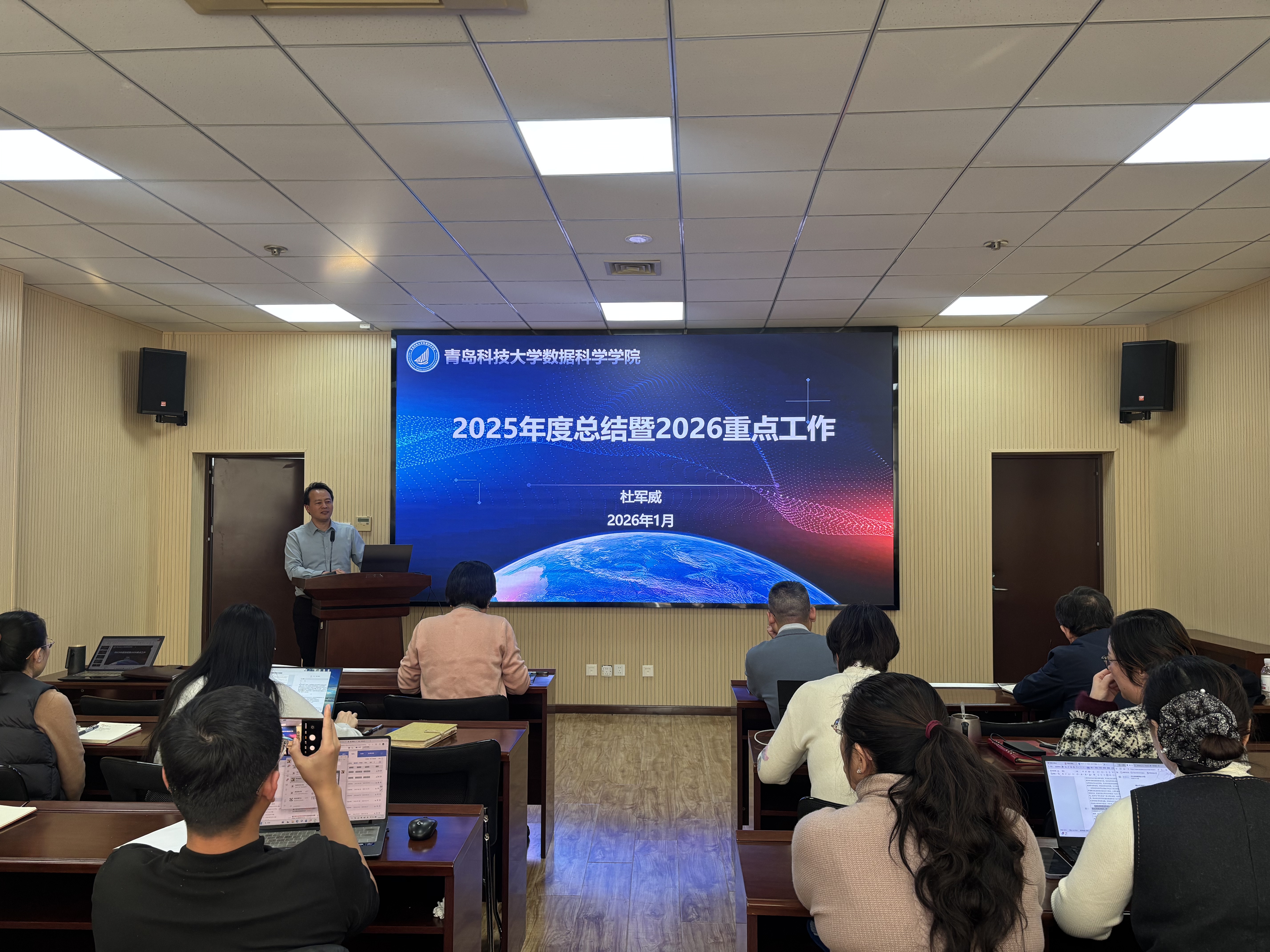 常务副经理杜军威代表公司作2025年度工作总结,围绕公司年度核心工作指标完成情况展开全面复盘,用详实的数据和具体案例,总结了过去一年在团队建设突破、人才培养提质、科研创新增效、社会服务赋能等方面的亮点工作。同时,也客观分析了公司发展面临的新形势、新挑战,明确了2026年要重点推进的核心任务,为公司下一步发展指明了方向。