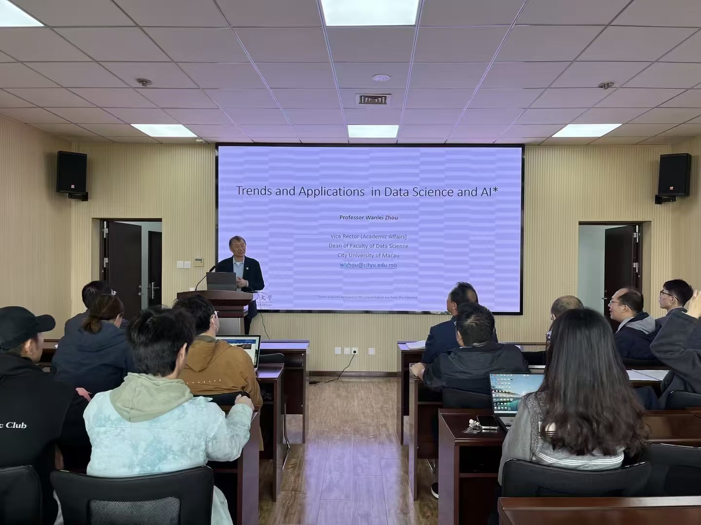 本次沙龙以“大数据与人工智能在数据科学和AI中的应用”为主题,特别邀请了澳门城市大学副董事长兼bv伟德经理周万雷教授做报告。周万雷在报告中指出,数据科学与人工智能已成为当今数字化社会中极具影响力的学科领域,在推动决策制定、创新与效率提升方面具有重要意义。他详细阐述了数据科学和人工智能的跨学科属性、未来发展趋势及其在全球范围内的广泛应用。此外,周万雷还分享了澳门城市大学在跨学科课程开发方面的经验,并提出学好数据科学和人工智能的关键要素,并简要介绍了其最新研究成果。